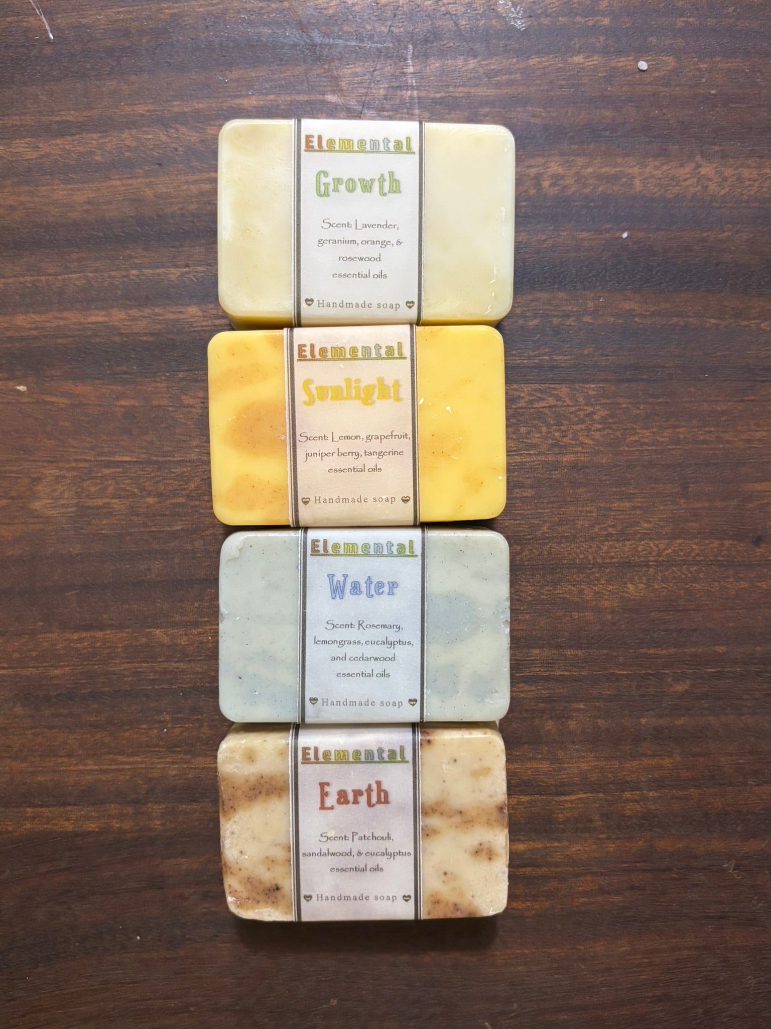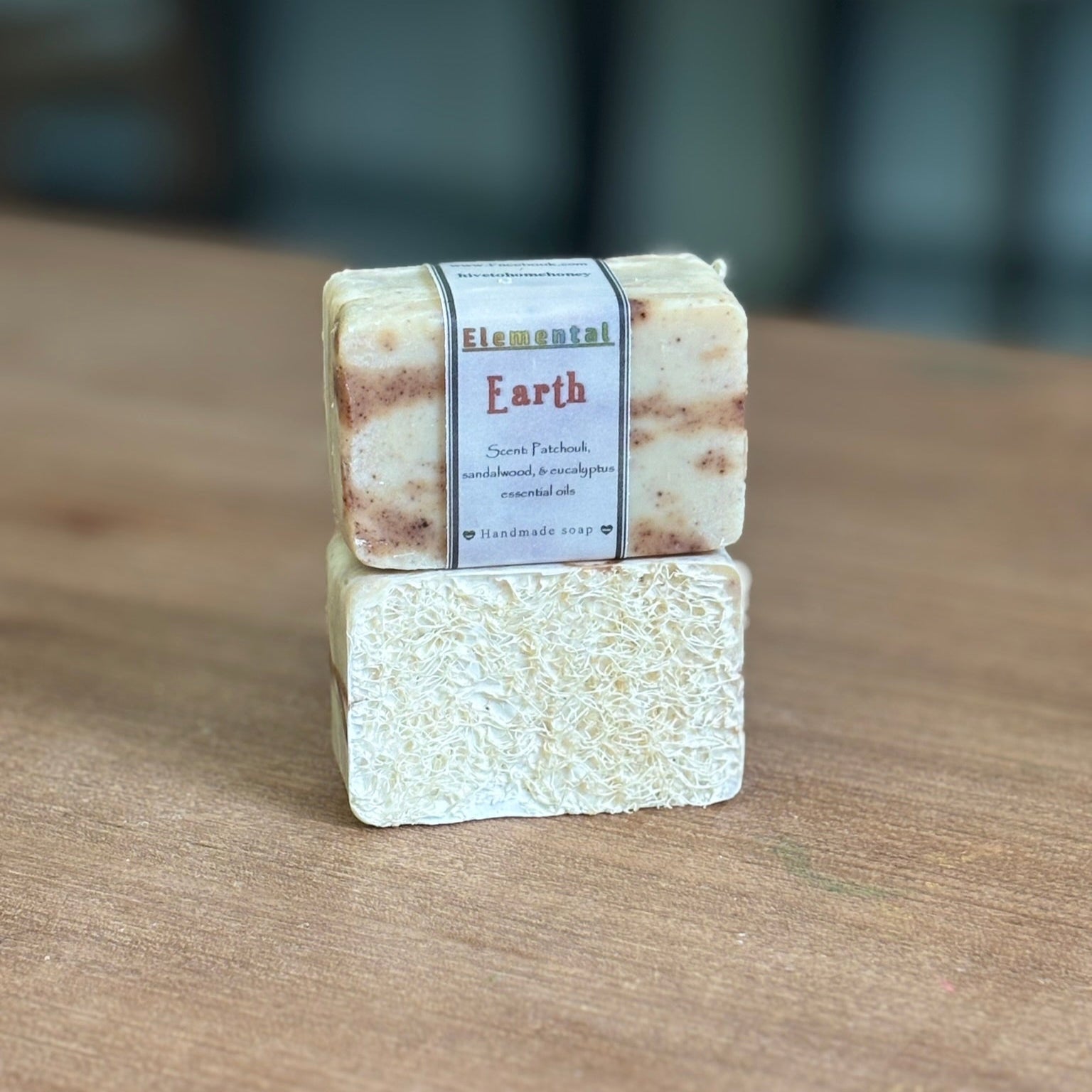 Scent is patchouli, sandalewood, & eucalyptus essential oils. Inspired by the gardener in me, I've created 4 soaps made with essential oils and coloured with all natural ingredients. Each soap has a small piece of luffa that I grew in my own backyard. The luffa really helps with getting that extra stuck on dirt and can even act as a soap dish.