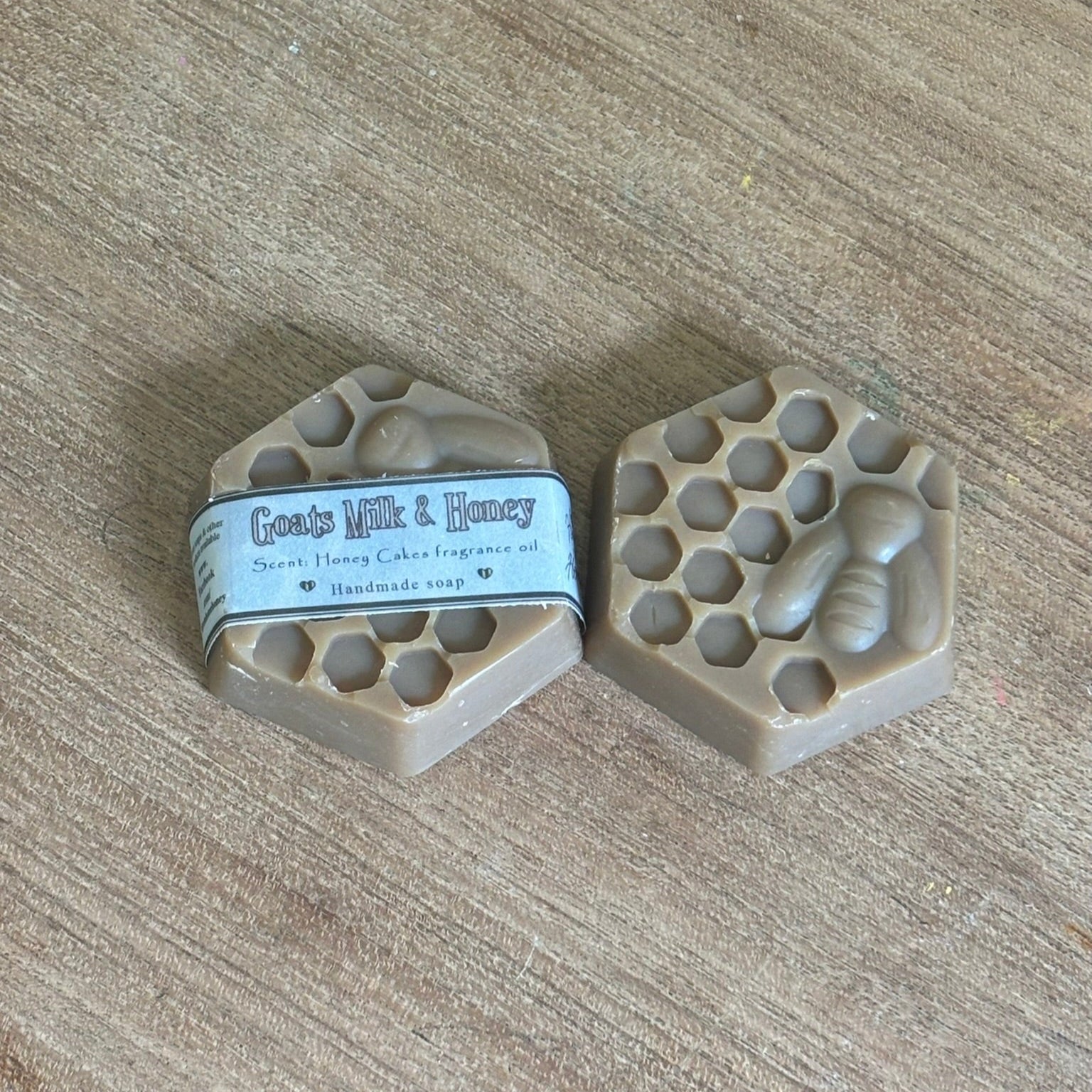 Scent is Honey Cakes fragrance oil. This soap is made with goats milk, honey, and beeswax. The size of the bar is smaller which is reflected in the price.
