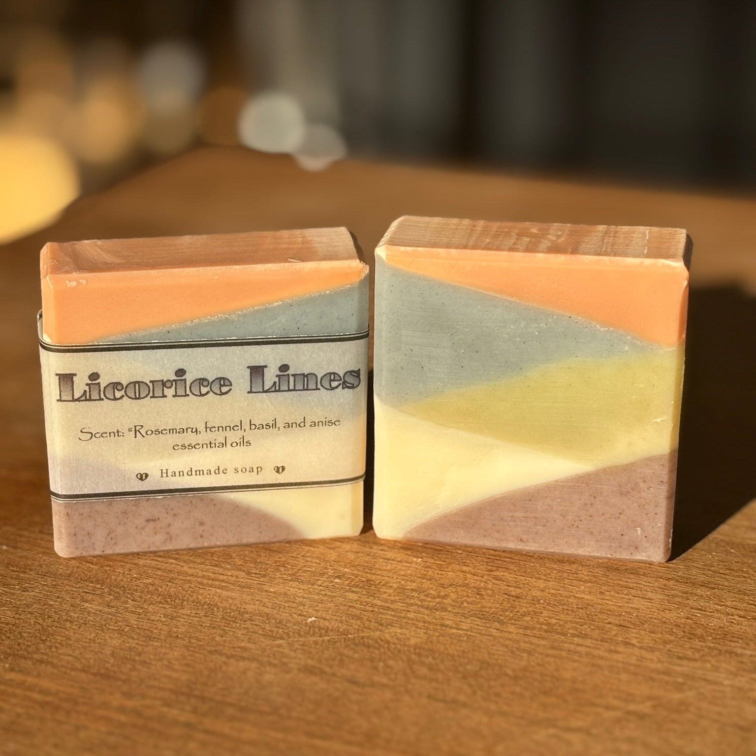 Scent is rosemary, fennel, basil, and anise essential oils. If you like black licorice... this is absolutely the soap for you! This soap is naturally scented and coloured.